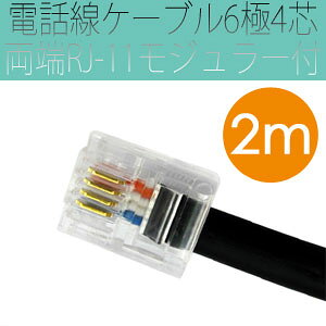 [送料無料] 電話線 モジュラーケーブル 6極4芯 2m | RJ11 RJ12 RJ14 コネクタ付 電話コード 電話回線 FAX モデム 接続 6極2芯 対応 ビジネスホン 家庭用 汎用パーツ