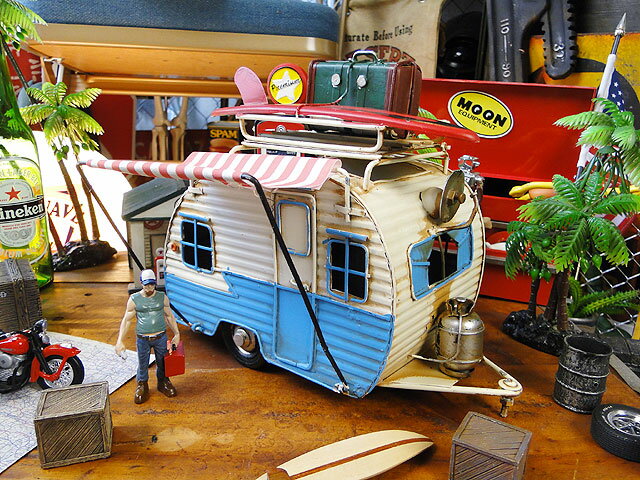 キャンピングカー ブリキオブジェ (ブルー) アメリカン雑貨 アメリカ雑貨 グッズ