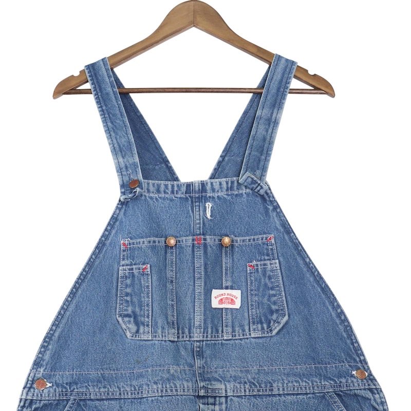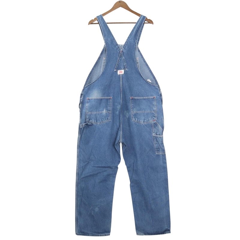 大きいサイズ メンズW42 ラウンドハウス デニムオーバーオール ブルー 雰囲気系 ウエスト実寸約104cm 股下70.5cm ROUND HOUSE ワーク ビンテージ アメリカ古着 USED BIG あす楽対応 hpc-0058【中古】