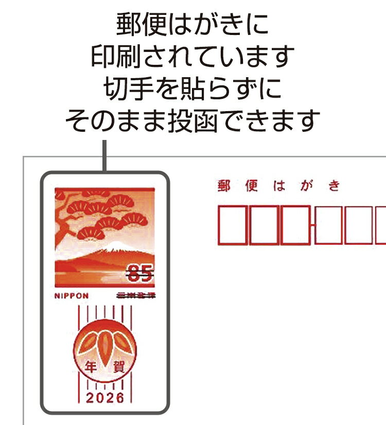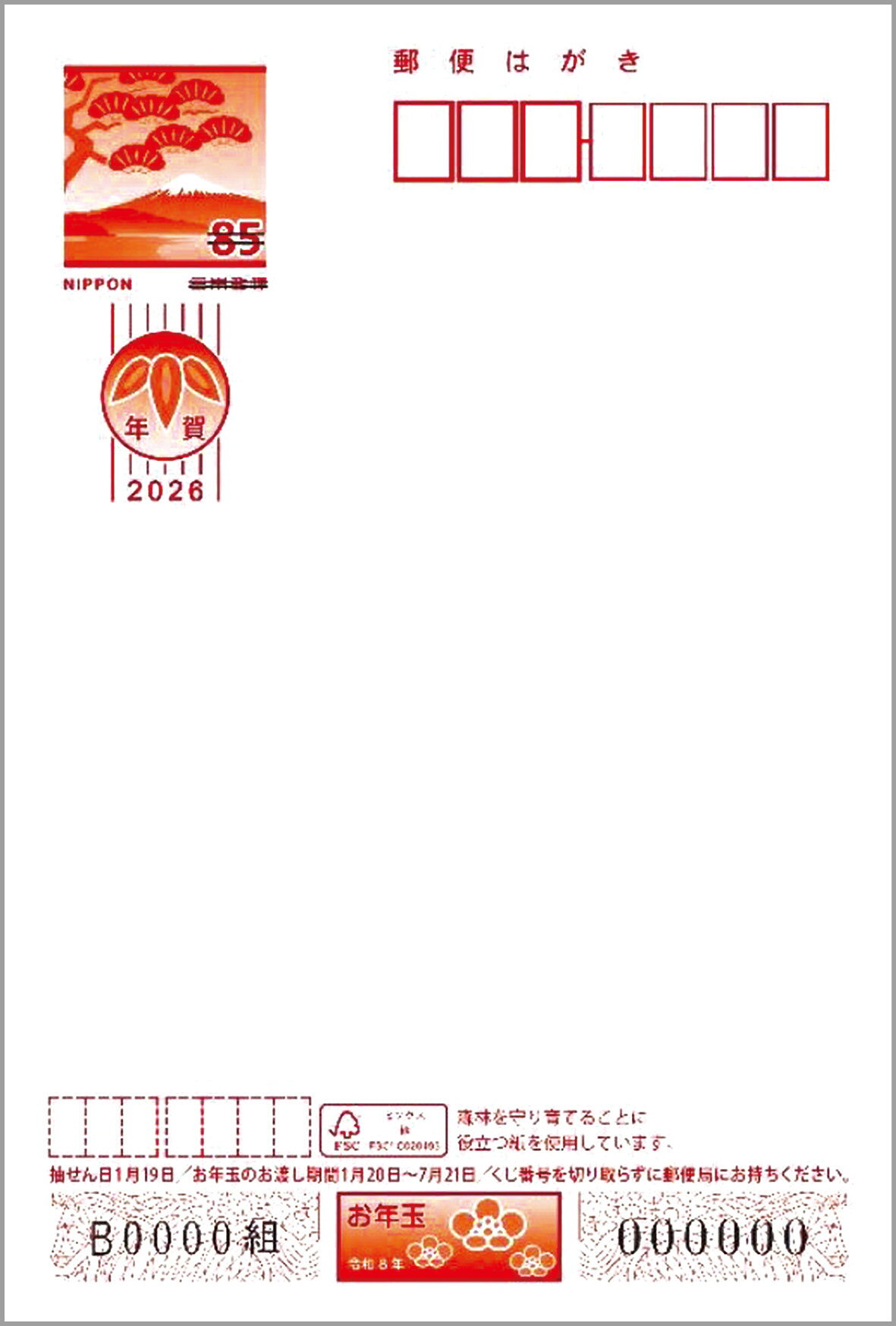 仕上がりサイズ: 100mm×148mm 数量:1セット3枚入り はがき:お年玉付き年賀はがき(無地)1枚85円