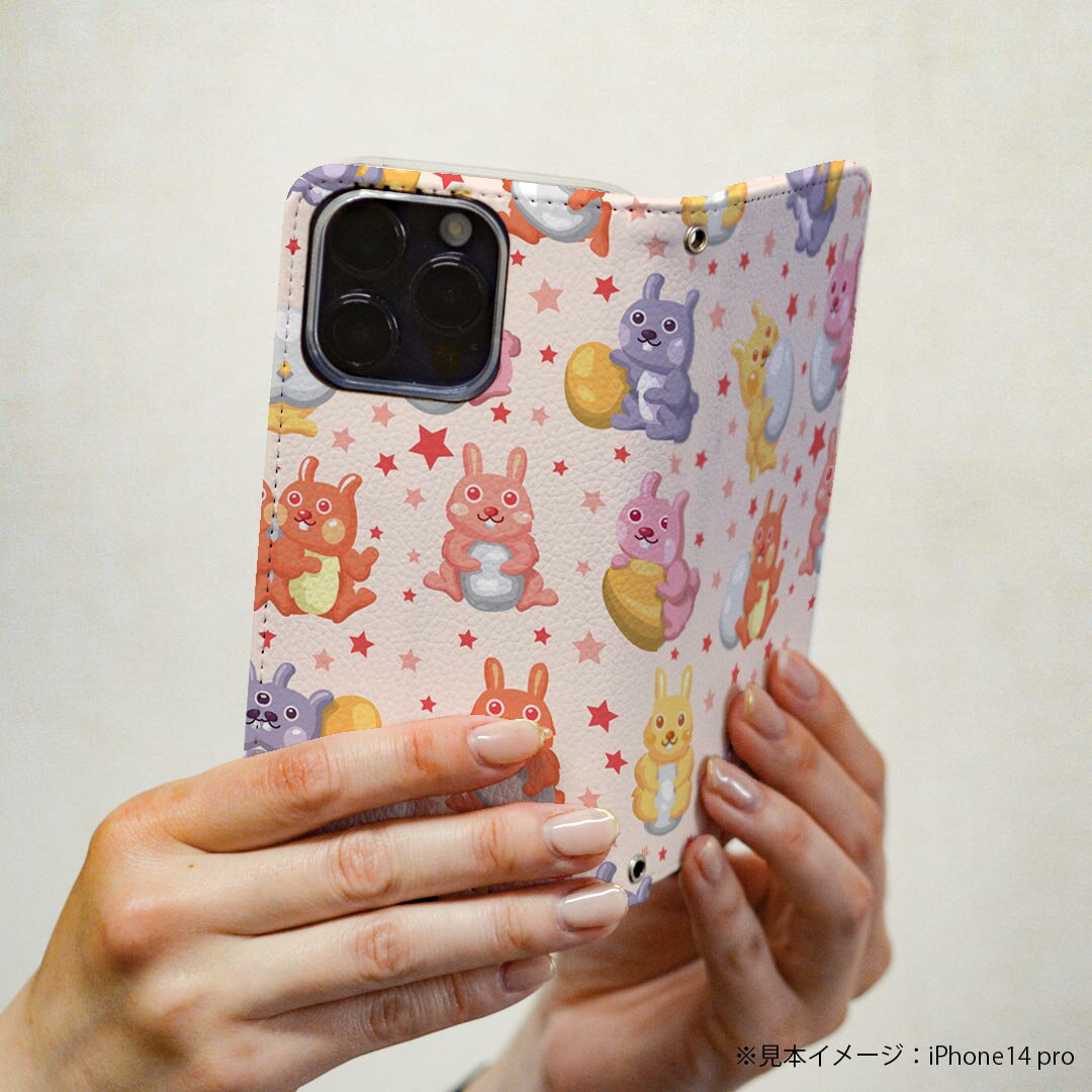Xperia X Performance SOV33 エクスペリア X 専用 ケース カバー 手帳型 マグネット式 ピタッと閉まる レザーケース カード収納 ポケット igcase 007709 うさぎ たまご ピンク 模様