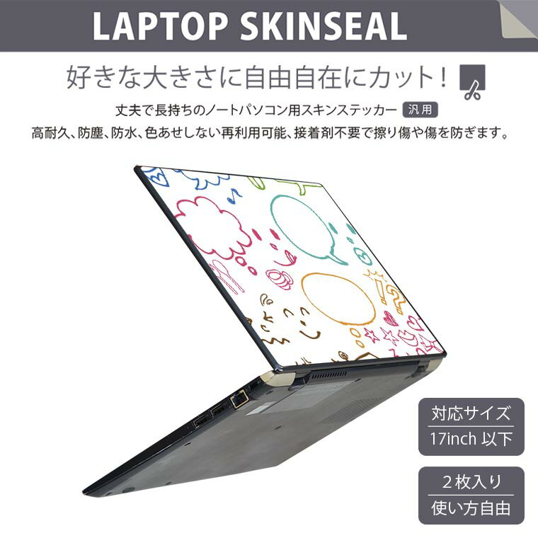 ノートパソコン スキンシール 17インチまで対応 汎用ステッカー 2枚セット LAVIE用 FMV用 LIFEBOOK用 Dynabook用 Lenovo用 Thinkbook用 IdeaPad用 HP用 Pavillon用 ENVY用 Elite用 Dell用 Vostro用 Inspiron用 VAIO用 002822 イラスト カラフル