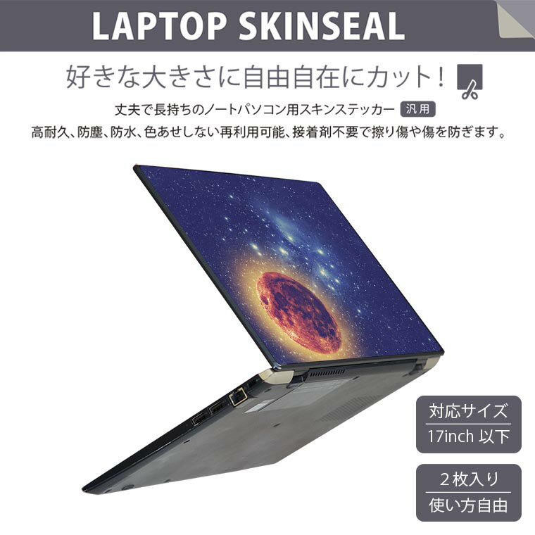 ノートパソコン スキンシール 17インチまで対応 汎用ステッカー 2枚セット LAVIE用 FMV用 LIFEBOOK用 Dynabook用 Lenovo用 Thinkbook用 IdeaPad用 HP用 Pavillon用 ENVY用 Elite用 Dell用 Vostro用 Inspiron用 VAIO用 011808 宇宙 星 惑星