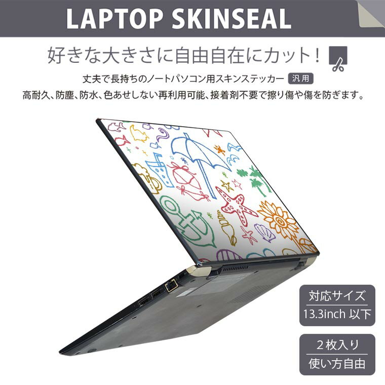ノートパソコン スキンシール 13.3インチまで対応 汎用ステッカー 2枚セット LAVIE用 FMV用 LIFEBOOK用 Dynabook用 Lenovo用 Thinkbook用 IdeaPad用 HP用 Pavillon用 ENVY用 Elite用 Dell用 Vostro用 Inspiron用 VAIO用 005342 海 太陽 夏 イラスト