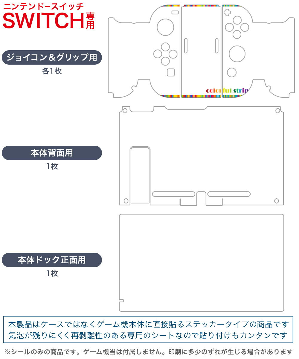igsticker Nintendo Switch 用 デザインスキンシール 任天堂 ニンテンドー スイッチ 専用 本体ドック Joy-Con Joycon ジョイコン 専用 ゲーム機 カバー アクセサリー フィルム ステッカー 006213 ストライプ カラフル 模様