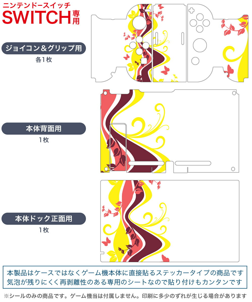 igsticker Nintendo Switch 用 デザインスキンシール 任天堂 ニンテンドー スイッチ 専用 本体ドック Joy-Con Joycon ジョイコン 専用 ゲーム機 カバー アクセサリー フィルム ステッカー 007560 植物 蝶 ピンク イエロー 黄色