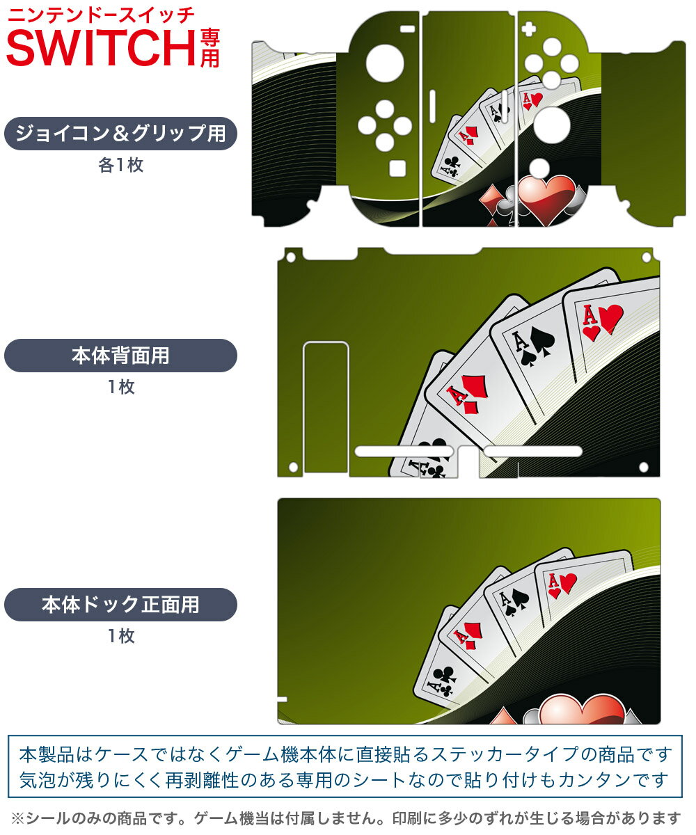 igsticker Nintendo Switch 用 デザインスキンシール 任天堂 ニンテンドー スイッチ 専用 本体ドック Joy-Con Joycon ジョイコン 専用 ゲーム機 カバー アクセサリー フィルム ステッカー 008833 イラスト トランプ カジノ