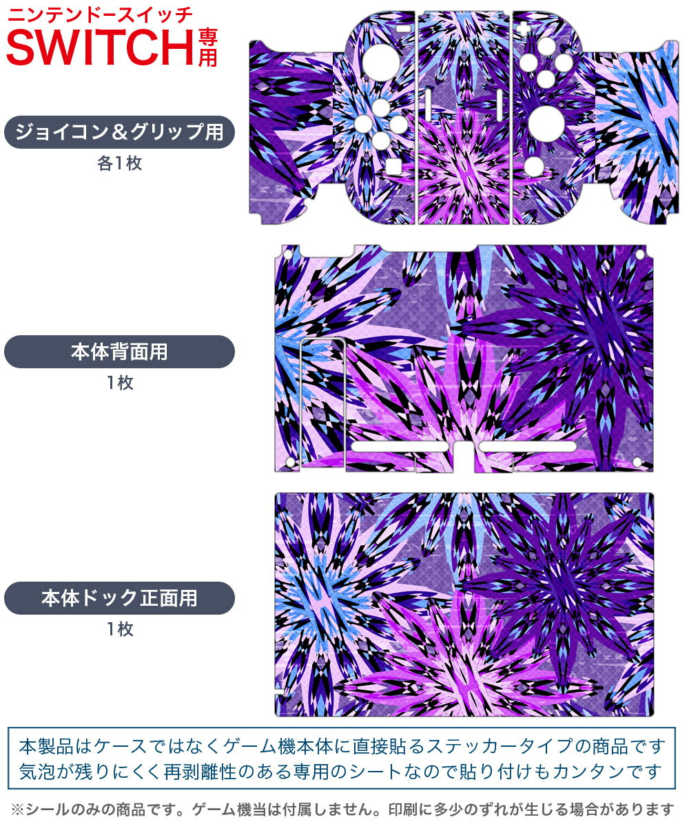 igsticker Nintendo Switch 用 デザインスキンシール 任天堂 ニンテンドー スイッチ 専用 本体ドック Joy-Con Joycon ジョイコン 専用 ゲーム機 カバー アクセサリー フィルム ステッカー 012534 紫 ピンク 柄