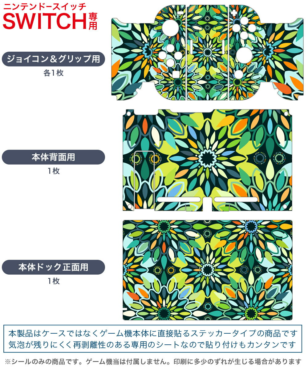 igsticker Nintendo Switch 用 デザインスキンシール 任天堂 ニンテンドー スイッチ 専用 本体ドック Joy-Con Joycon ジョイコン 専用 ゲーム機 カバー アクセサリー フィルム ステッカー 013984 花 模様