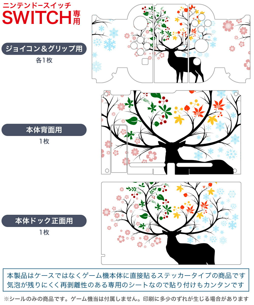 igsticker Nintendo Switch 用 デザインスキンシール 任天堂 ニンテンドー スイッチ 専用 本体ドック Joy-Con Joycon ジョイコン 専用 ゲーム機 カバー アクセサリー フィルム ステッカー 009497 植物 動物