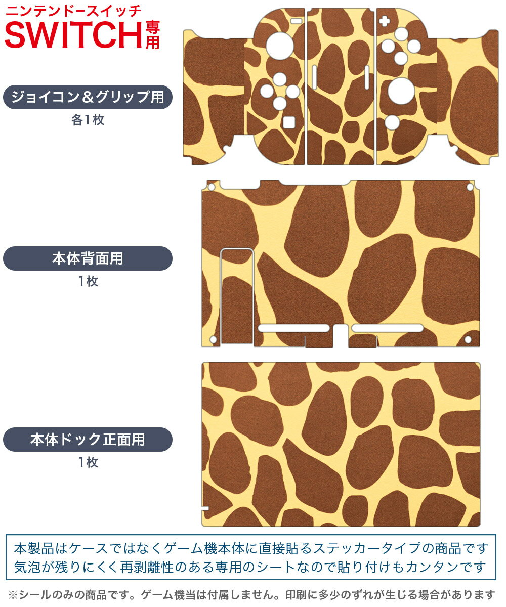 igsticker Nintendo Switch 用 デザインスキンシール 任天堂 ニンテンドー スイッチ 専用 本体ドック Joy-Con Joycon ジョイコン 専用 ゲーム機 カバー アクセサリー フィルム ステッカー 006925 ジラフ柄 模様 動物