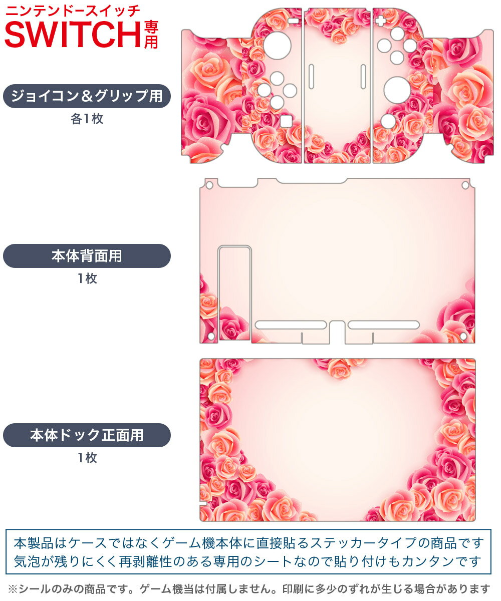 igsticker Nintendo Switch 用 デザインスキンシール 任天堂 ニンテンドー スイッチ 専用 本体ドック Joy-Con Joycon ジョイコン 専用 ゲーム機 カバー アクセサリー フィルム ステッカー 005639 ハート 花