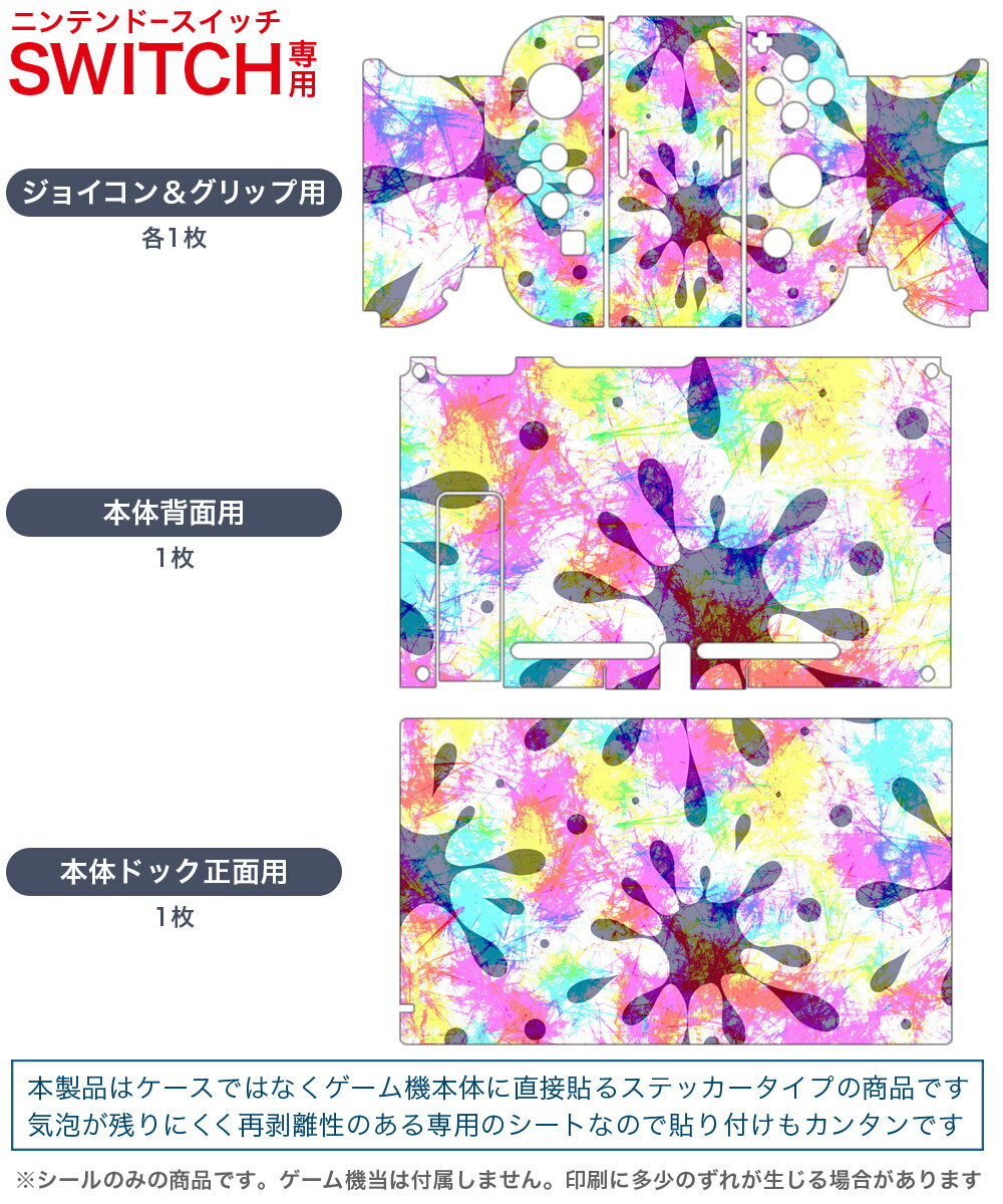 igsticker Nintendo Switch 用 デザインスキンシール 任天堂 ニンテンドー スイッチ 専用 本体ドック Joy-Con Joycon ジョイコン 専用 ゲーム機 カバー アクセサリー フィルム ステッカー 012603 カラフル ペイント 花火