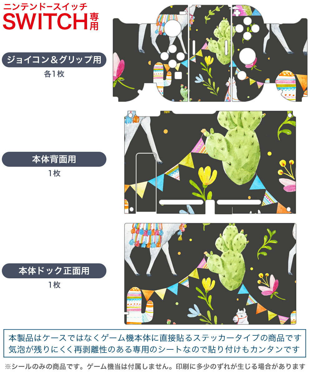 igsticker Nintendo Switch 用 デザインスキンシール 任天堂 ニンテンドー スイッチ 専用 本体ドック Joy-Con Joycon ジョイコン 専用 ゲーム機 カバー アクセサリー フィルム ステッカー 014062 アルパカ サボテン アニマル