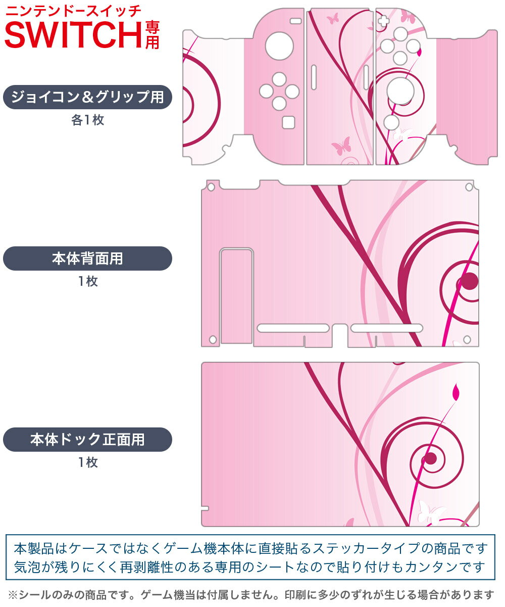 igsticker Nintendo Switch 用 デザインスキンシール 任天堂 ニンテンドー スイッチ 専用 本体ドック Joy-Con Joycon ジョイコン 専用 ゲーム機 カバー アクセサリー フィルム ステッカー 001537 蝶 ピンク