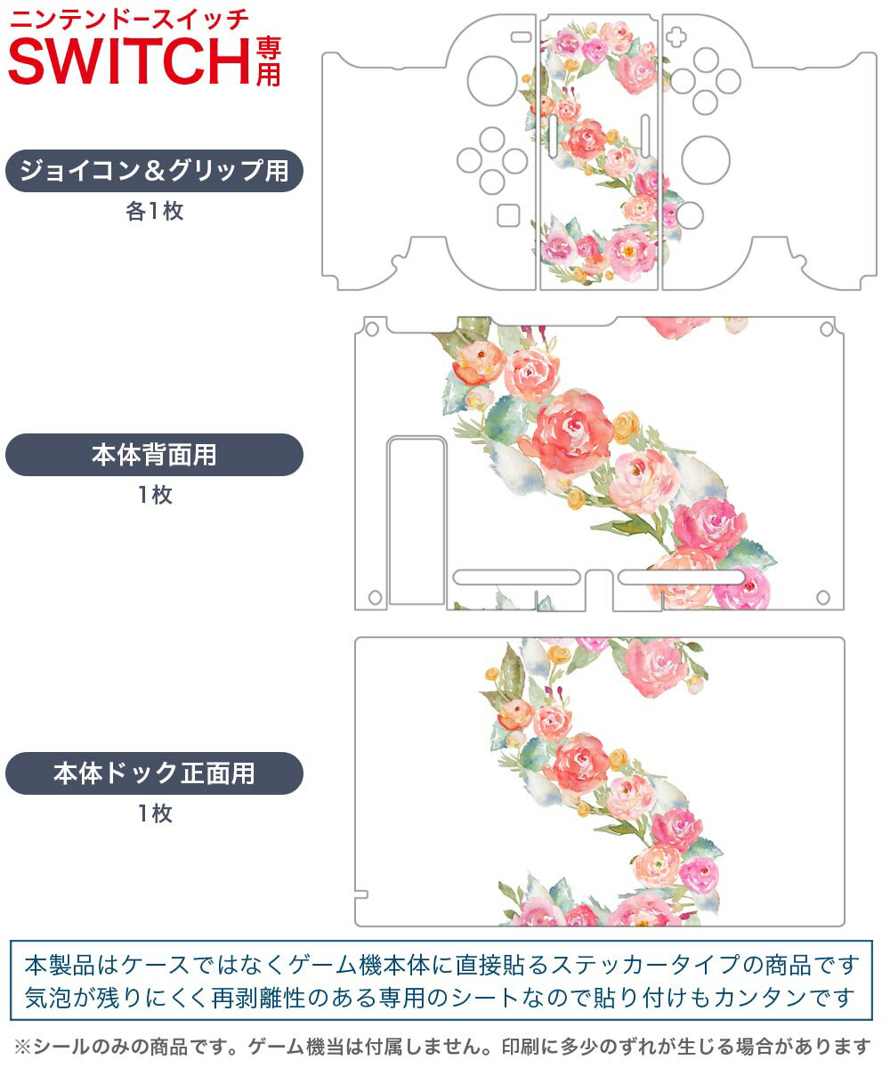 igsticker Nintendo Switch 用 デザインスキンシール 任天堂 ニンテンドー スイッチ 専用 本体ドック Joy-Con Joycon ジョイコン 専用 ゲーム機 カバー アクセサリー フィルム ステッカー 019507 フォント 文字 s アルファベット