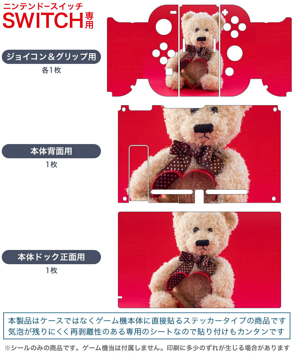 igsticker Nintendo Switch 用 デザインスキンシール 任天堂 ニンテンドー スイッチ 専用 本体ドック Joy-Con Joycon ジョイコン 専用 ゲーム機 カバー アクセサリー フィルム ステッカー 006350 写真 ぬいぐるみ テディベア