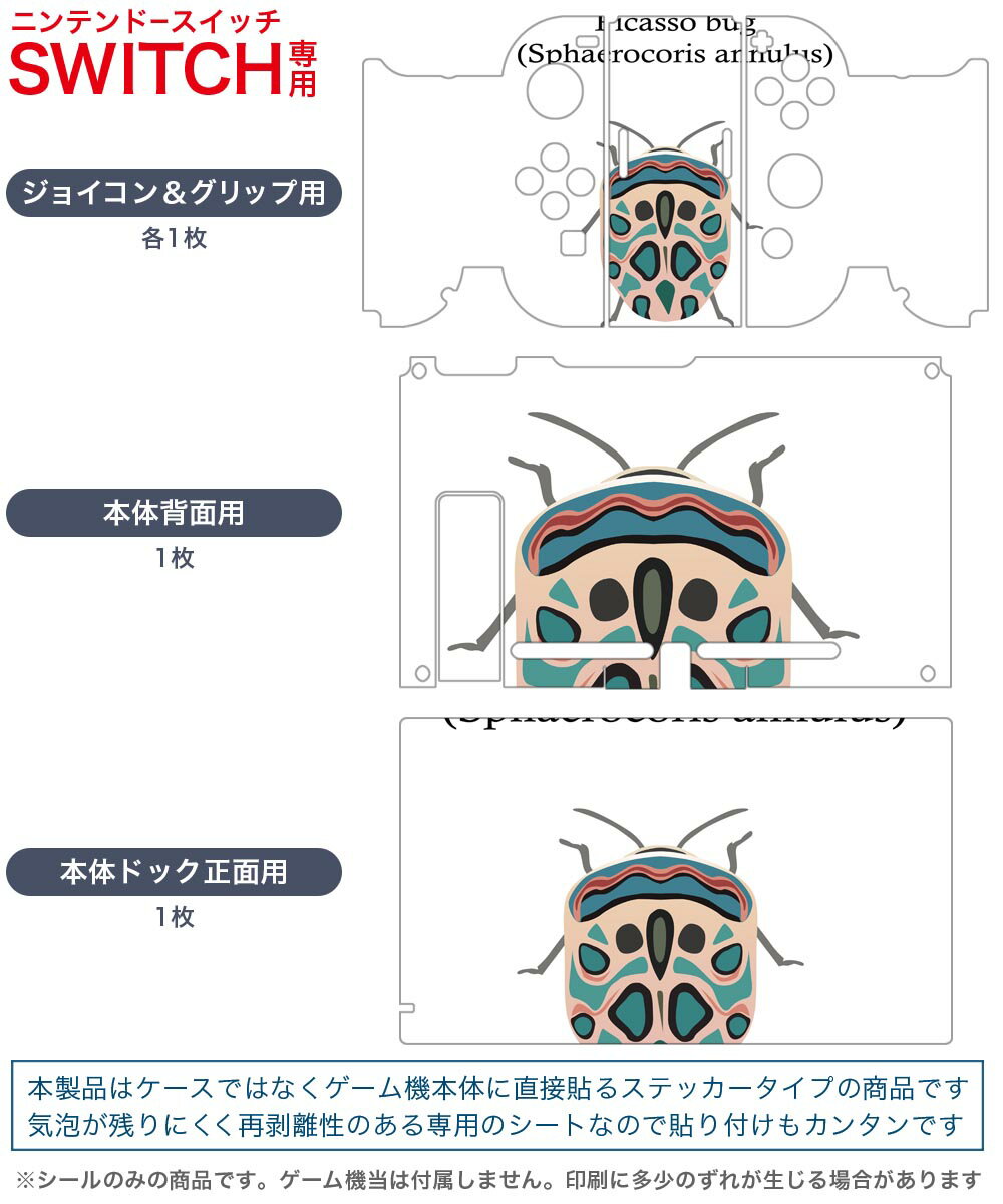 igsticker Nintendo Switch 用 デザインスキンシール 任天堂 ニンテンドー スイッチ 専用 本体ドック Joy-Con Joycon ジョイコン 専用 ゲーム機 カバー アクセサリー フィルム ステッカー 020023 虫 虫 picasso bug ピカソバグ