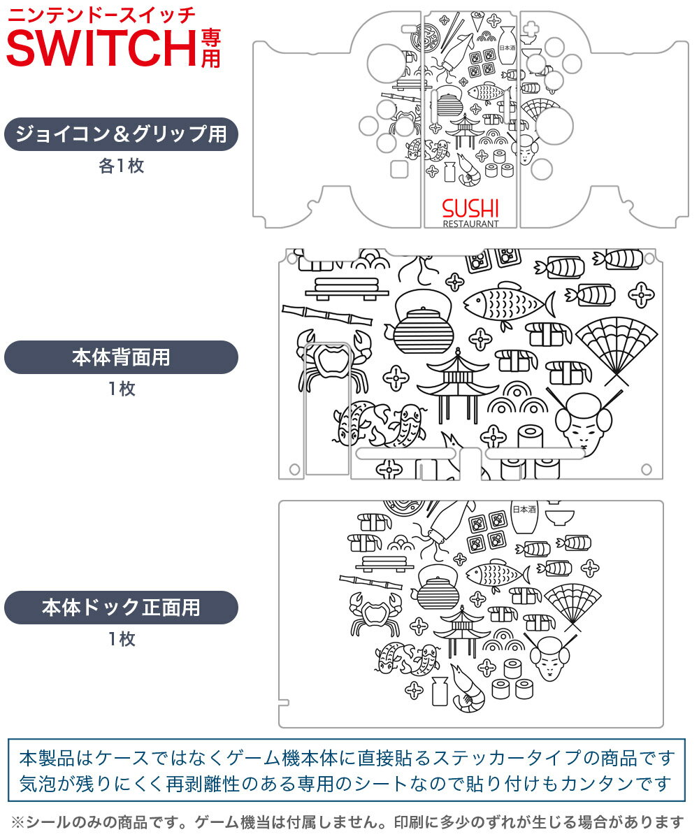 igsticker Nintendo Switch 用 デザインスキンシール 任天堂 ニンテンドー スイッチ 専用 本体ドック Joy-Con Joycon ジョイコン 専用 ゲーム機 カバー アクセサリー フィルム ステッカー 014137 お寿司 和風