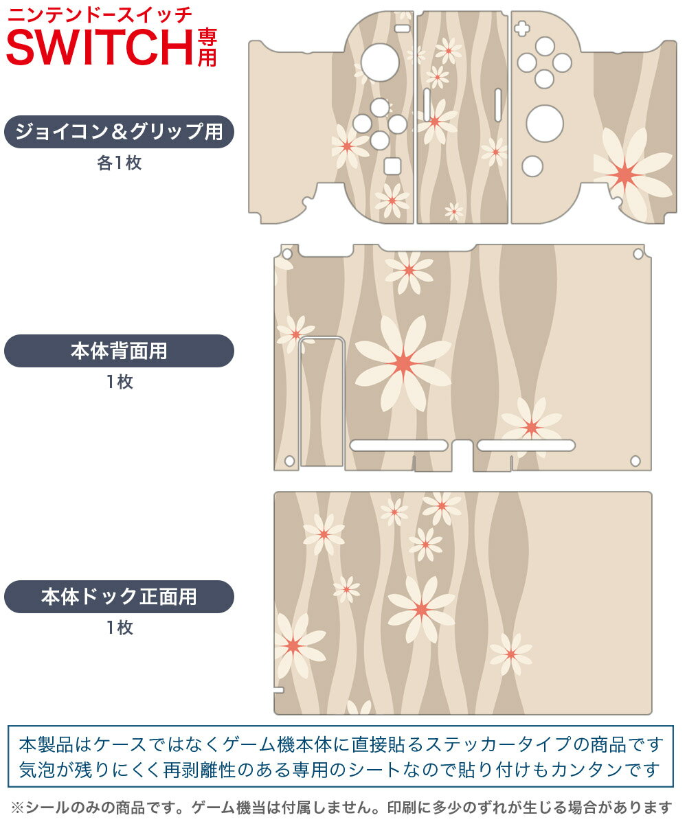 igsticker Nintendo Switch 用 デザインスキンシール 任天堂 ニンテンドー スイッチ 専用 本体ドック Joy-Con Joycon ジョイコン 専用 ゲーム機 カバー アクセサリー フィルム ステッカー 004535 花 シンプル