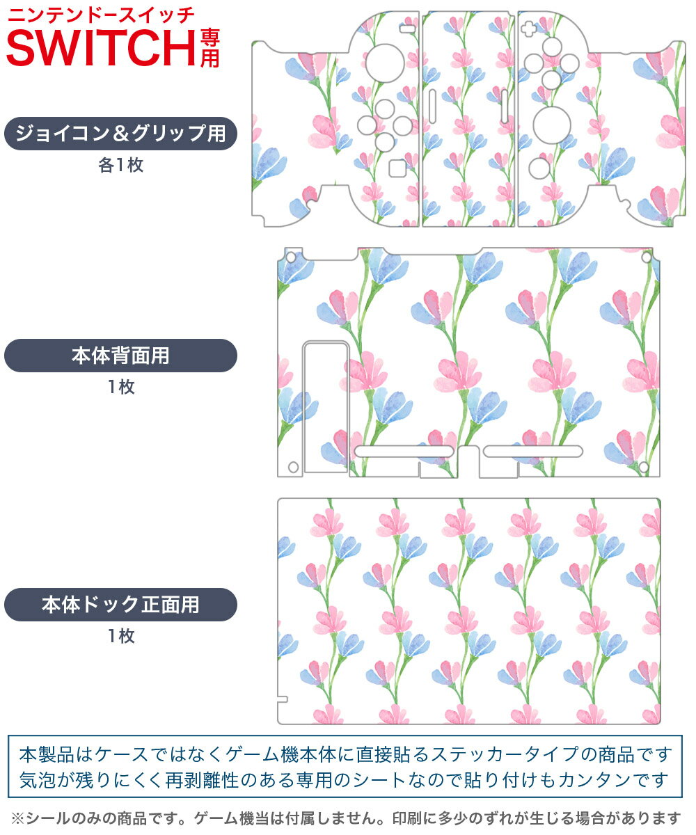 igsticker Nintendo Switch 用 デザインスキンシール 任天堂 ニンテンドー スイッチ 専用 本体ドック Joy-Con Joycon ジョイコン 専用 ゲーム機 カバー アクセサリー フィルム ステッカー 012733 花 花柄 パステル