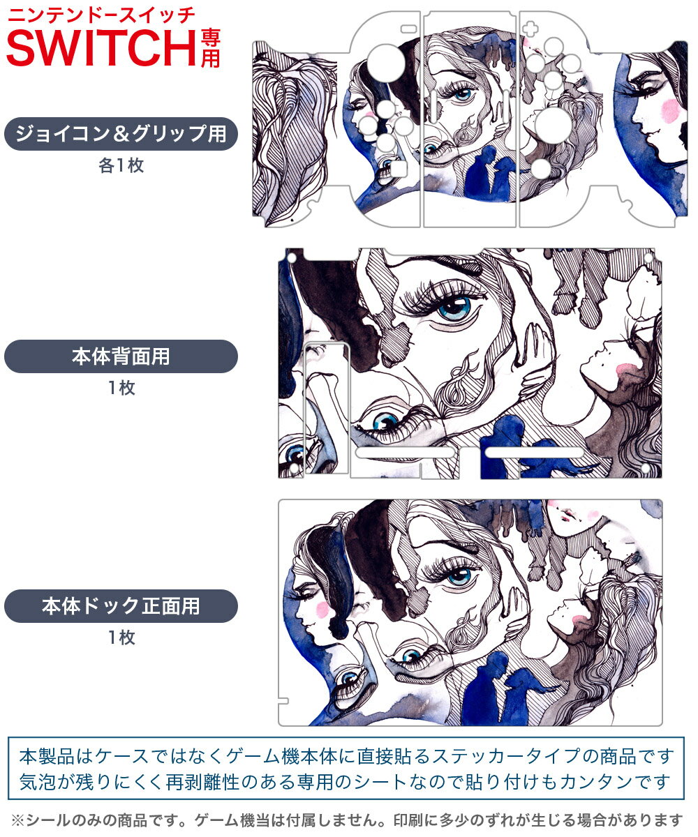 igsticker Nintendo Switch 用 デザインスキンシール 任天堂 ニンテンドー スイッチ 専用 本体ドック Joy-Con Joycon ジョイコン 専用 ゲーム機 カバー アクセサリー フィルム ステッカー 014178 イラスト 人物
