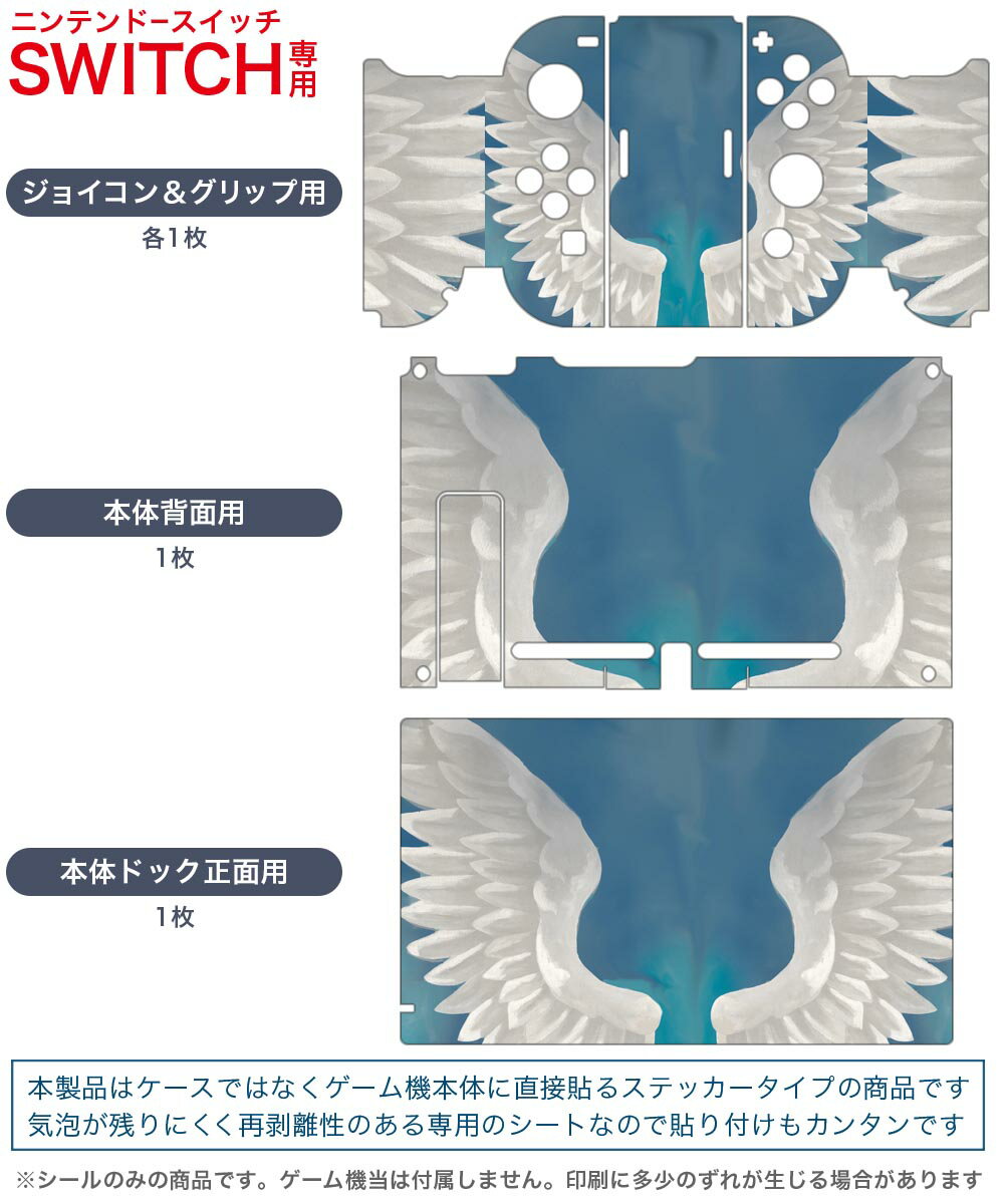 igsticker Nintendo Switch 用 デザインスキンシール 任天堂 ニンテンドー スイッチ 専用 本体ドック Joy-Con Joycon ジョイコン 専用 ゲーム機 カバー アクセサリー フィルム ステッカー 023975 羽根 イラスト