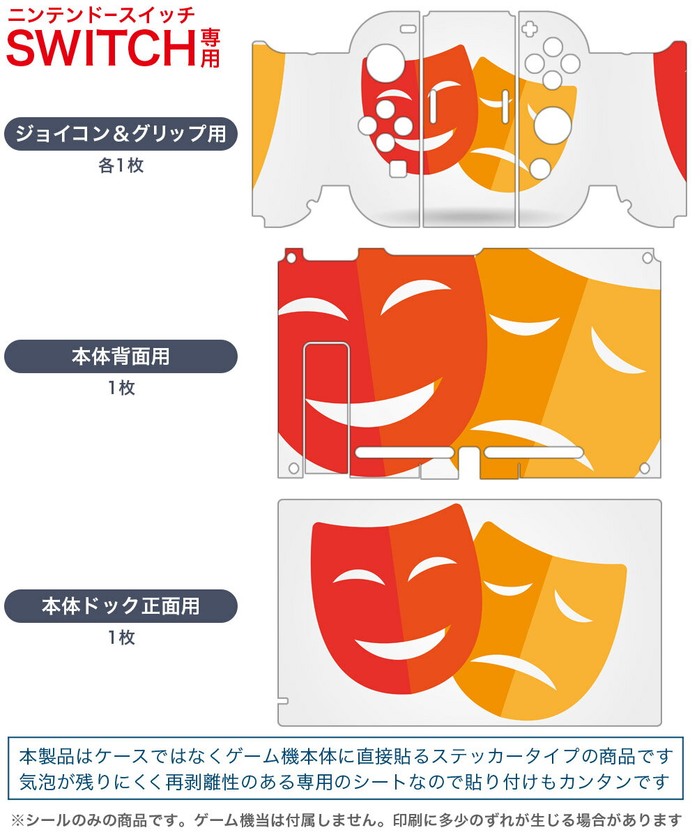 igsticker Nintendo Switch 用 デザインスキンシール 任天堂 ニンテンドー スイッチ 専用 本体ドック Joy-Con Joycon ジョイコン 専用 ゲーム機 カバー アクセサリー フィルム ステッカー 010307 仮面 赤 オレンジ