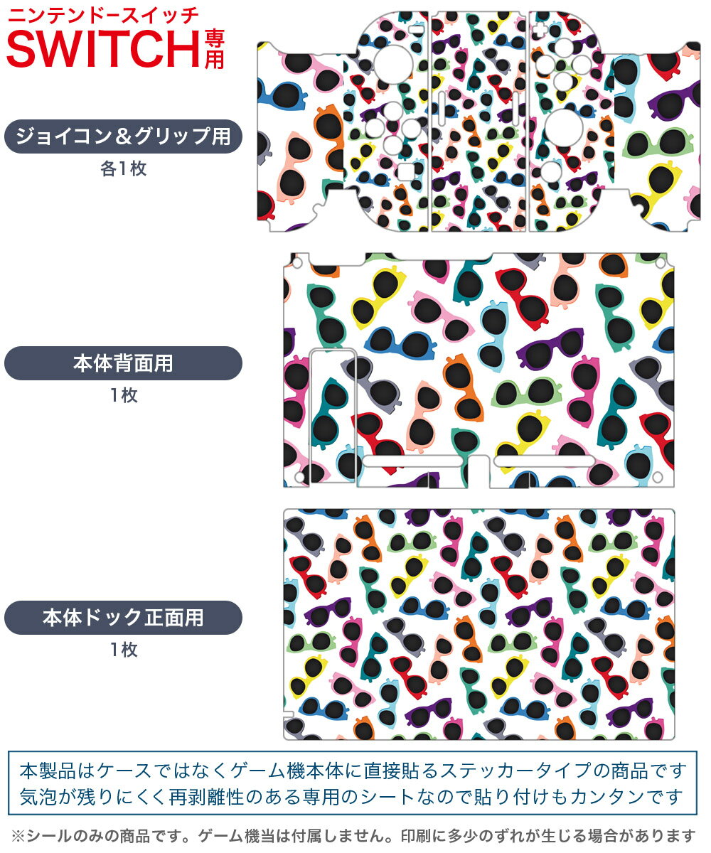 igsticker Nintendo Switch 用 デザインスキンシール 任天堂 ニンテンドー スイッチ 専用 本体ドック Joy-Con Joycon ジョイコン 専用 ゲーム機 カバー アクセサリー フィルム ステッカー 012749 サングラス カラフル ポップ
