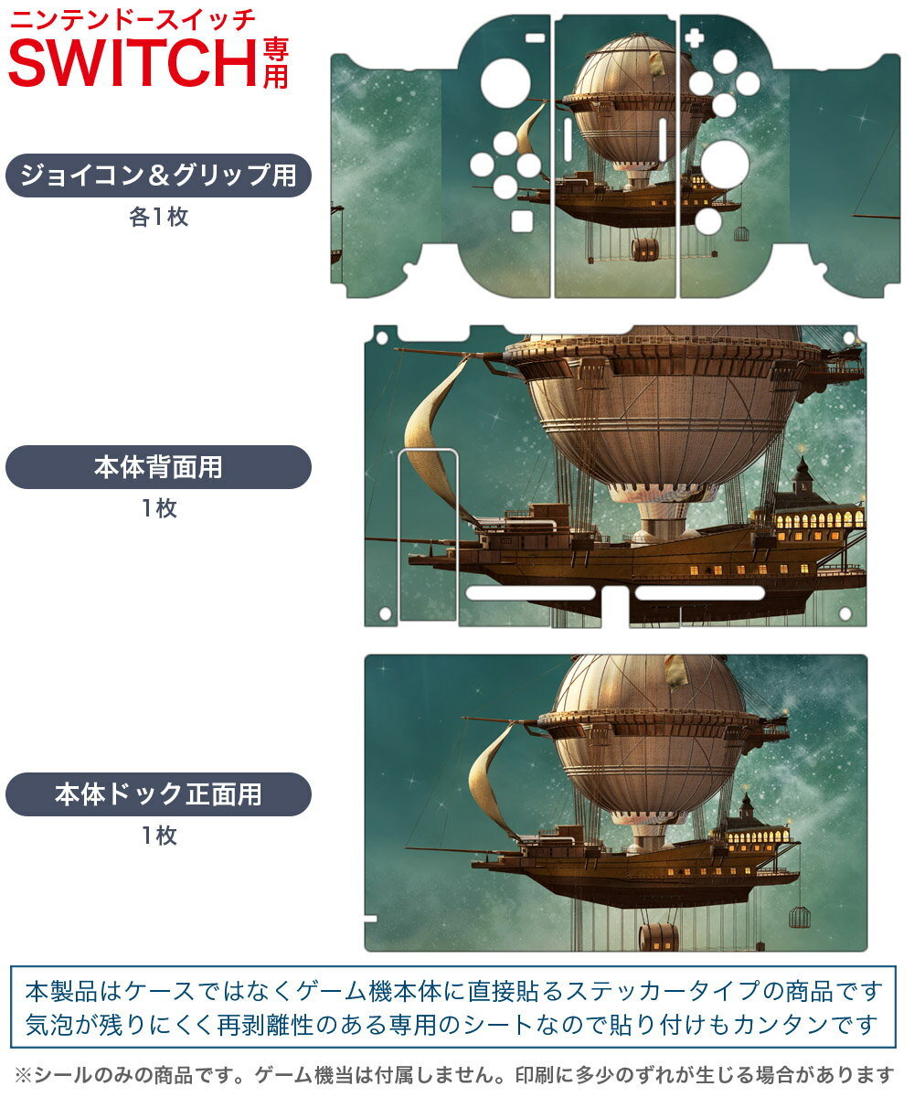 igsticker Nintendo Switch 用 デザインスキンシール 任天堂 ニンテンドー スイッチ 専用 本体ドック Joy-Con Joycon ジョイコン 専用 ゲーム機 カバー アクセサリー フィルム ステッカー 013540 飛行船 宇宙