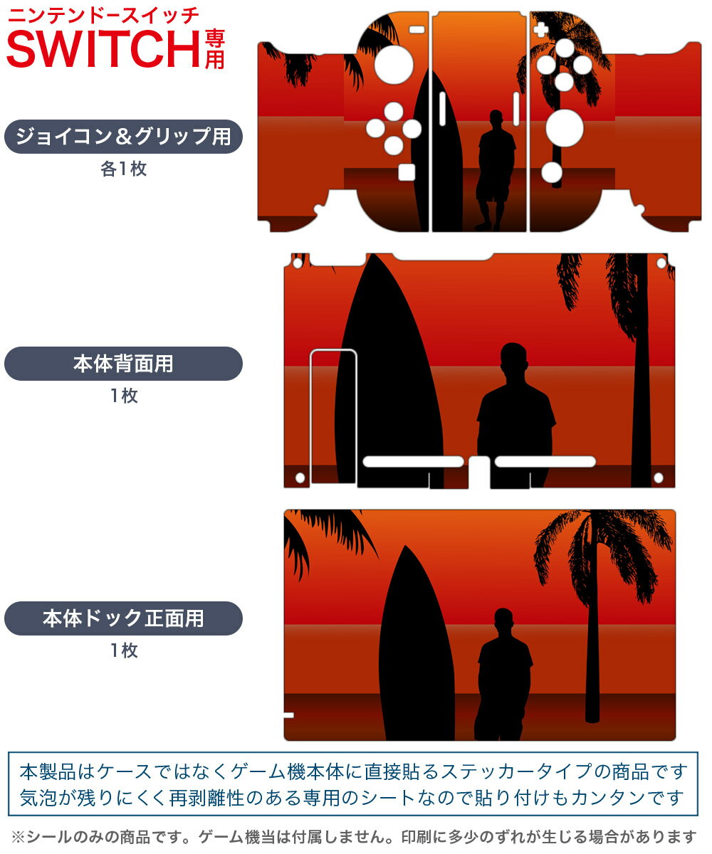 igsticker Nintendo Switch 用 デザインスキンシール 任天堂 ニンテンドー スイッチ 専用 本体ドック Joy-Con Joycon ジョイコン 専用 ゲーム機 カバー アクセサリー フィルム ステッカー 003151 クール サーフィン 海 写真