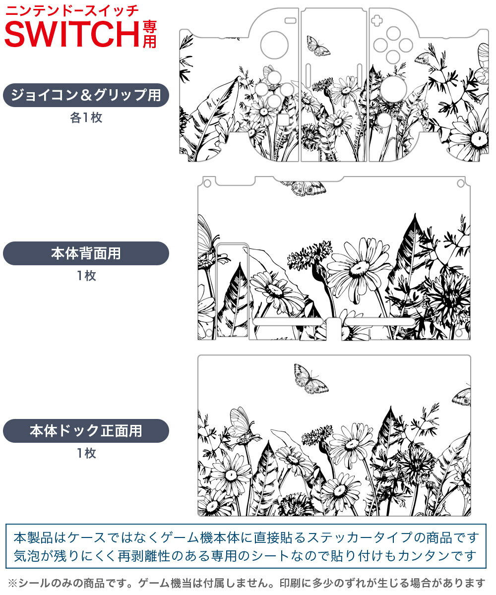 igsticker Nintendo Switch 用 デザインスキンシール 任天堂 ニンテンドー スイッチ 専用 本体ドック Joy-Con Joycon ジョイコン 専用 ゲーム機 カバー アクセサリー フィルム ステッカー 014236 花 蝶
