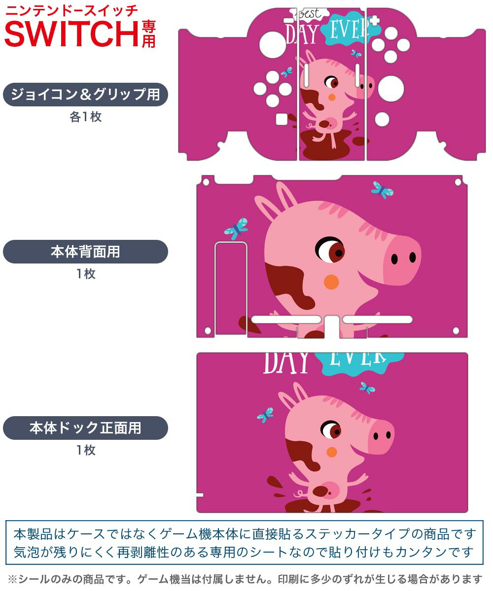 igsticker Nintendo Switch 用 デザインスキンシール 任天堂 ニンテンドー スイッチ 専用 本体ドック Joy-Con Joycon ジョイコン 専用 ゲーム機 カバー アクセサリー フィルム ステッカー 019086 イラスト アニマル キッズ