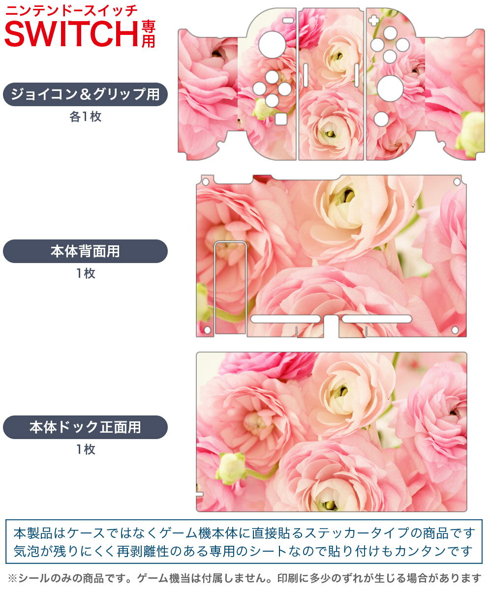 igsticker Nintendo Switch 用 デザインスキンシール 任天堂 ニンテンドー スイッチ 専用 本体ドック Joy-Con Joycon ジョイコン 専用 ゲーム機 カバー アクセサリー フィルム ステッカー 005242 花 リボン ピンク