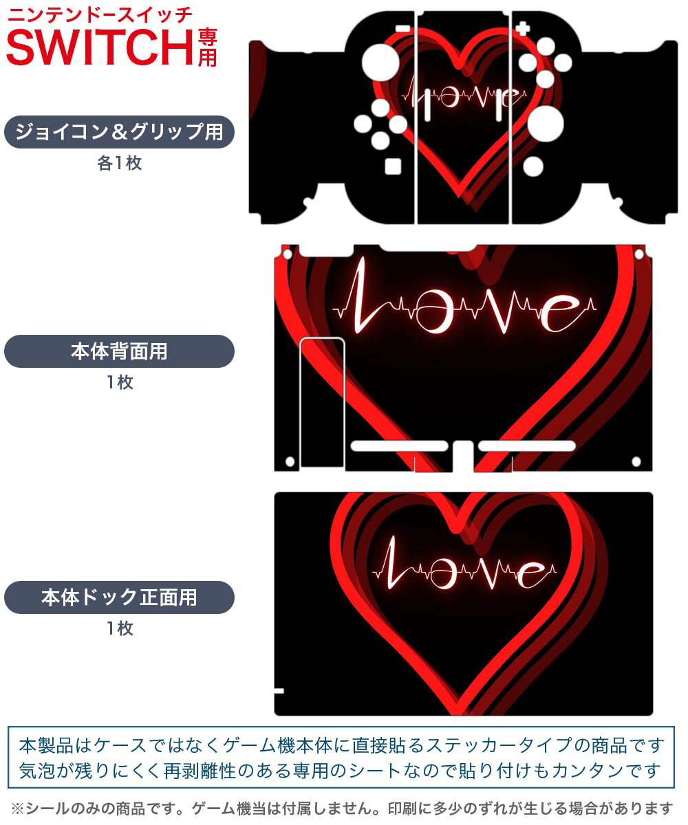 igsticker Nintendo Switch 用 デザインスキンシール 任天堂 ニンテンドー スイッチ 専用 本体ドック Joy-Con Joycon ジョイコン 専用 ゲーム機 カバー アクセサリー フィルム ステッカー 023536 文字 ハート 英字