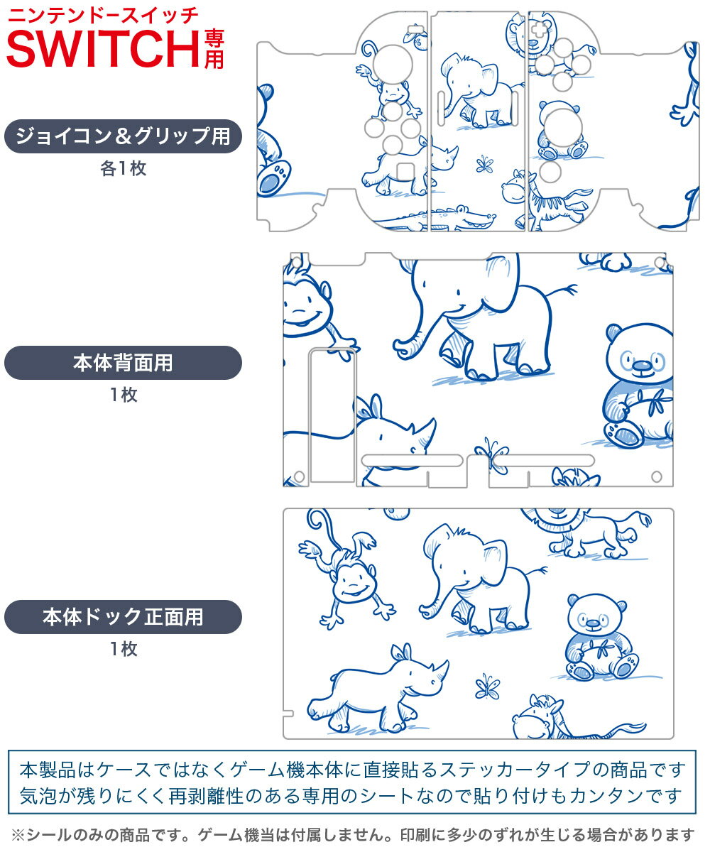 igsticker Nintendo Switch 用 デザインスキンシール 任天堂 ニンテンドー スイッチ 専用 本体ドック Joy-Con Joycon ジョイコン 専用 ゲーム機 カバー アクセサリー フィルム ステッカー 009723 動物 サファリ 青