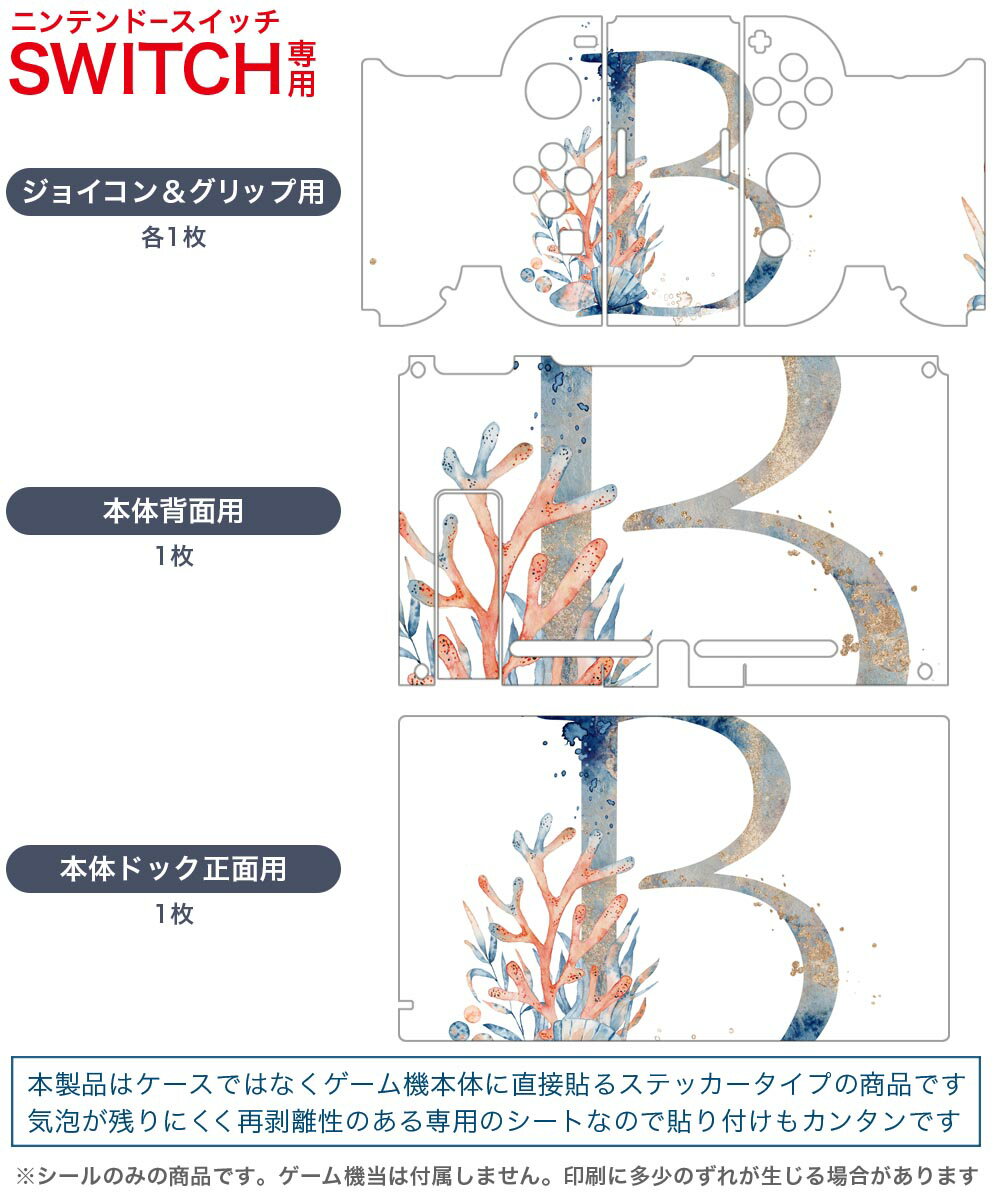 igsticker Nintendo Switch 用 デザインスキンシール 任天堂 ニンテンドー スイッチ 専用 本体ドック Joy-Con Joycon ジョイコン 専用 ゲーム機 カバー アクセサリー フィルム ステッカー 019654 フォント 文字 b アルファベット
