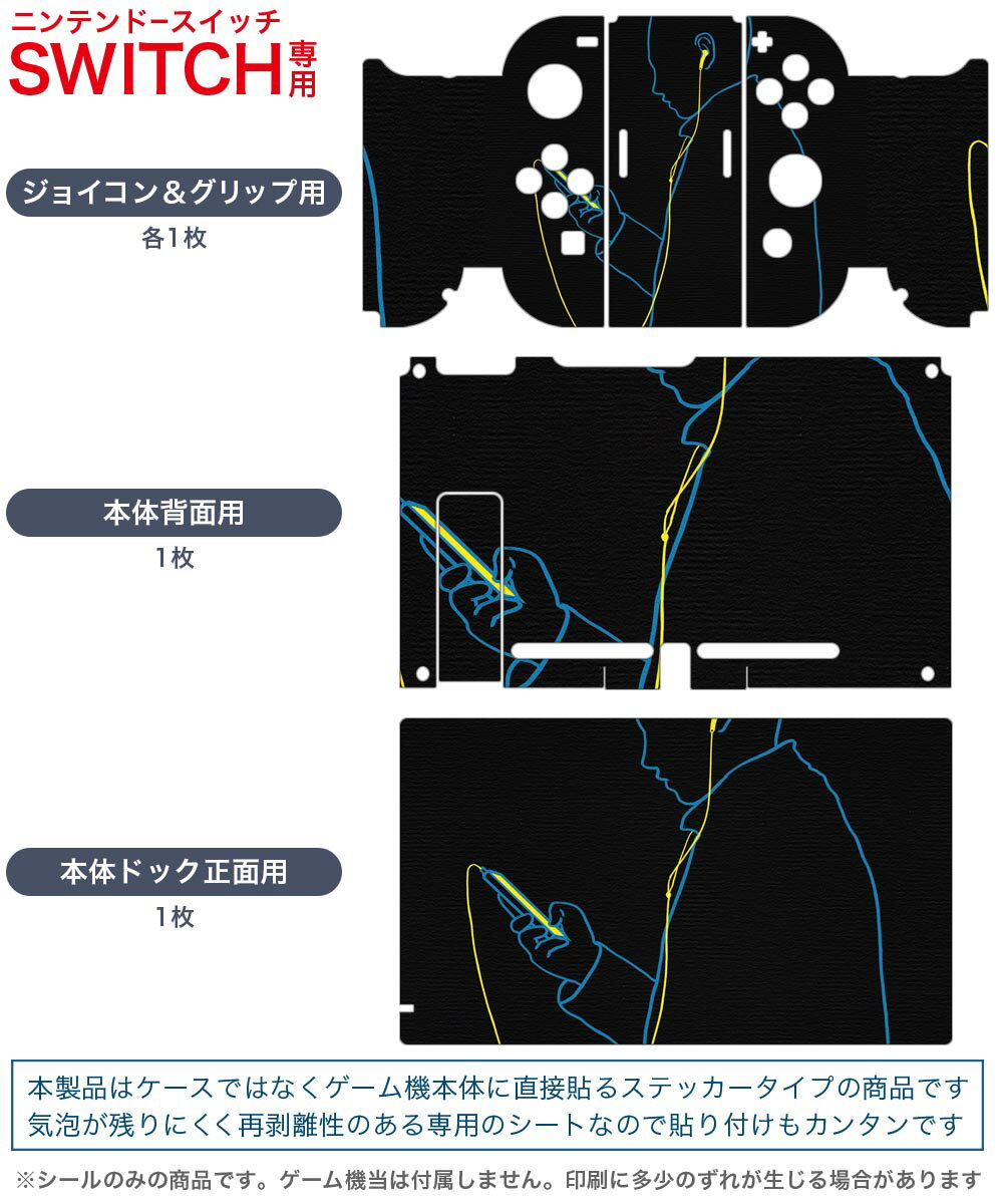 igsticker Nintendo Switch 用 デザインスキンシール 任天堂 ニンテンドー スイッチ 専用 本体ドック Joy-Con Joycon ジョイコン 専用 ゲーム機 カバー アクセサリー フィルム ステッカー 023547 イラスト 人物 黒