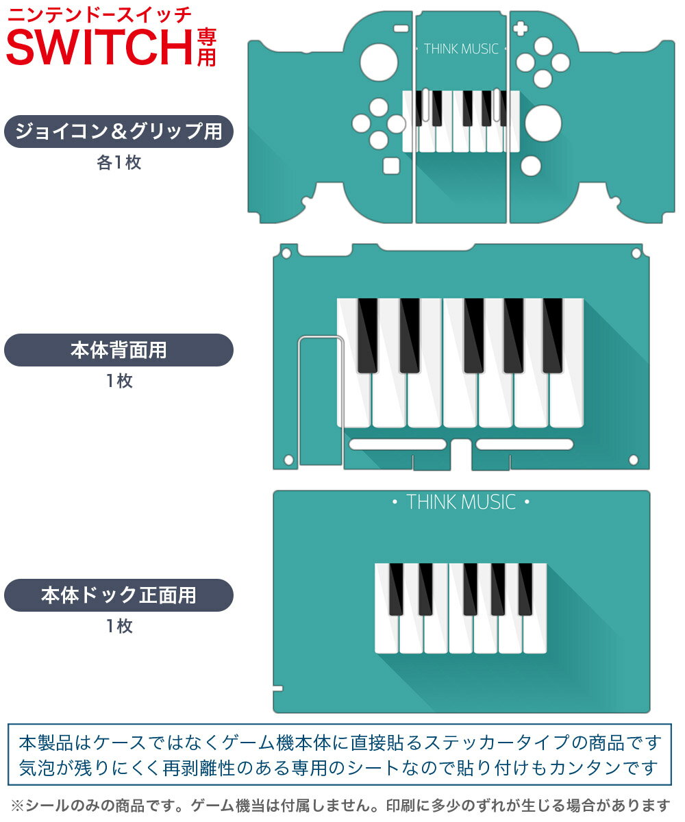 igsticker Nintendo Switch 用 デザインスキンシール 任天堂 ニンテンドー スイッチ 専用 本体ドック Joy-Con Joycon ジョイコン 専用 ゲーム機 カバー アクセサリー フィルム ステッカー 010400 ピアノ 音楽 緑