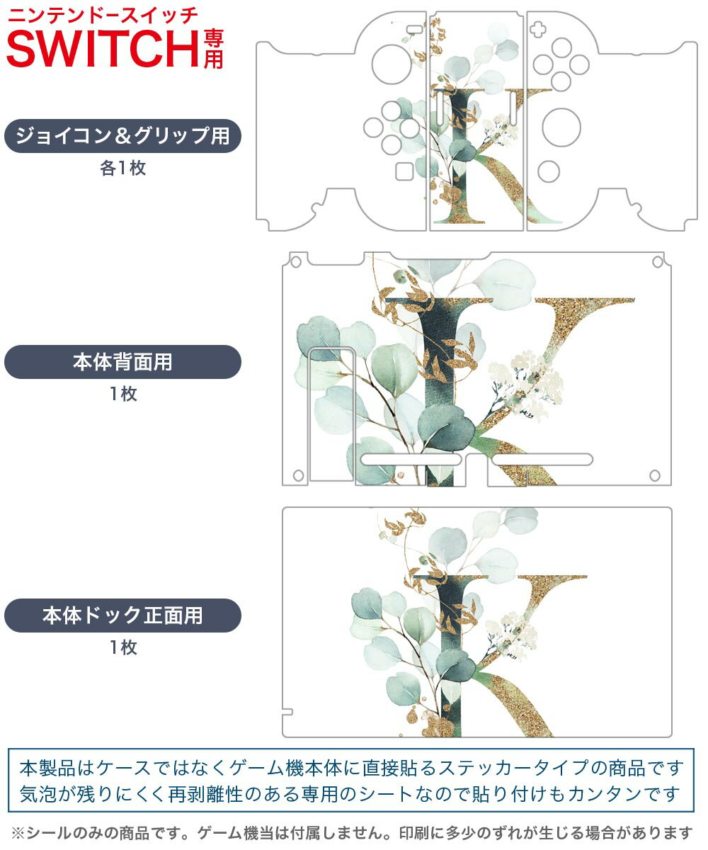 igsticker Nintendo Switch 用 デザインスキンシール 任天堂 ニンテンドー スイッチ 専用 本体ドック Joy-Con Joycon ジョイコン 専用 ゲーム機 カバー アクセサリー フィルム ステッカー 019128 フォント 文字 k アルファベット