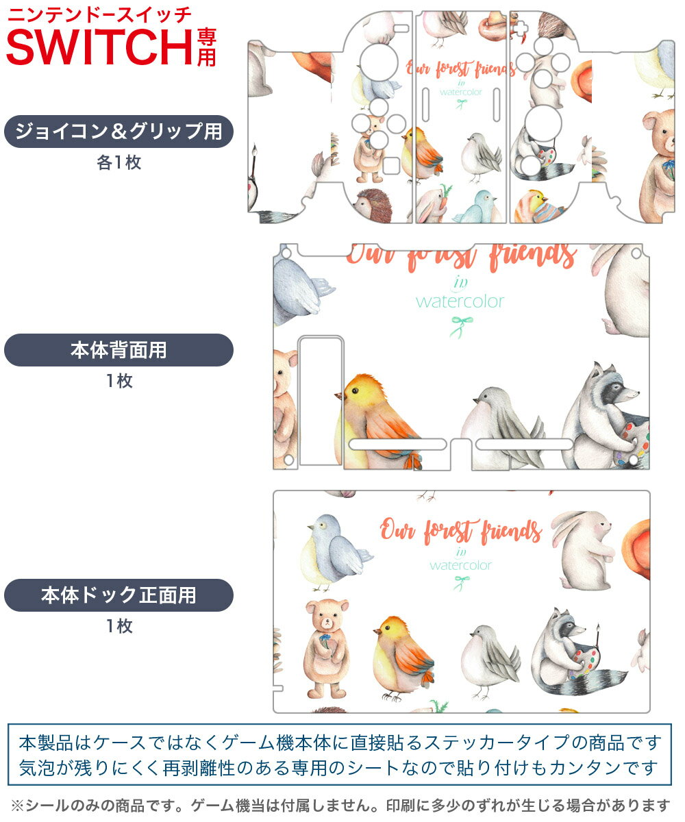 igsticker Nintendo Switch 用 デザインスキンシール 任天堂 ニンテンドー スイッチ 専用 本体ドック Joy-Con Joycon ジョイコン 専用 ゲーム機 カバー アクセサリー フィルム ステッカー 014336 動物 アニマル