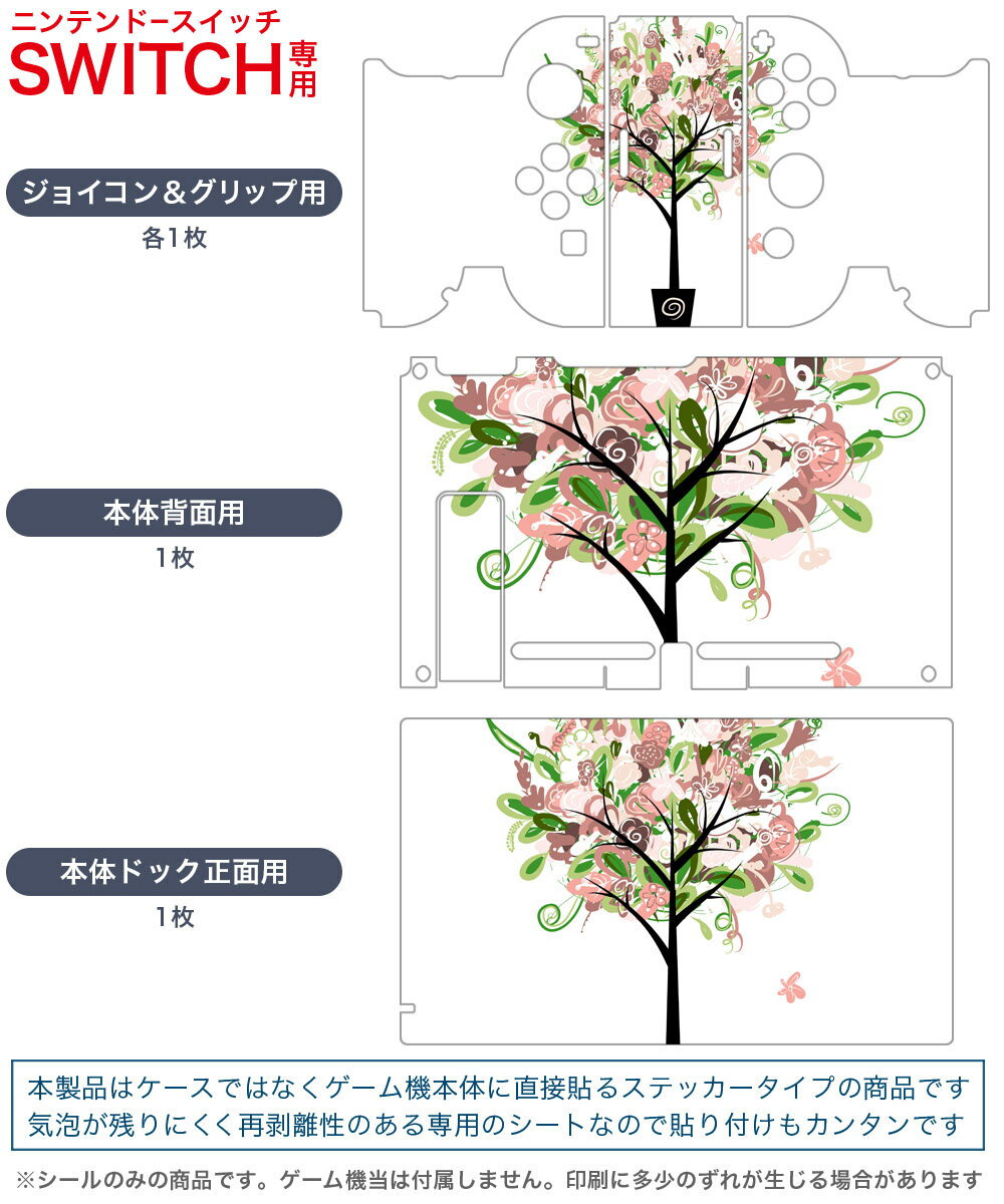 igsticker Nintendo Switch 用 デザインスキンシール 任天堂 ニンテンドー スイッチ 専用 本体ドック Joy-Con Joycon ジョイコン 専用 ゲーム機 カバー アクセサリー フィルム ステッカー 009805 花 ピンク