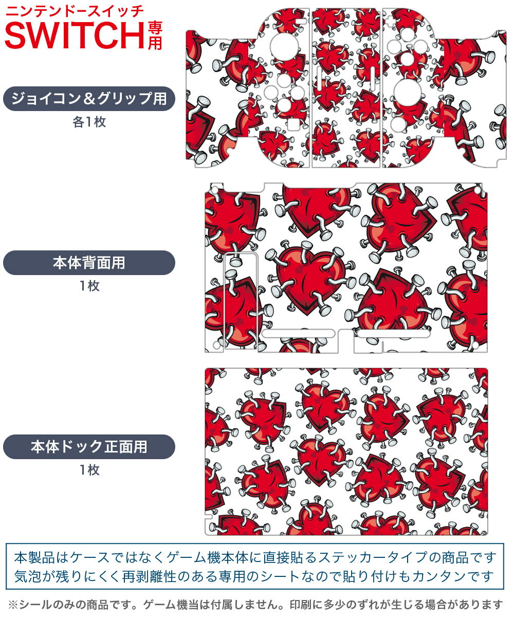 igsticker Nintendo Switch 用 デザインスキンシール 任天堂 ニンテンドー スイッチ 専用 本体ドック Joy-Con Joycon ジョイコン 専用 ゲーム機 カバー アクセサリー フィルム ステッカー 011675 ハート 釘 赤