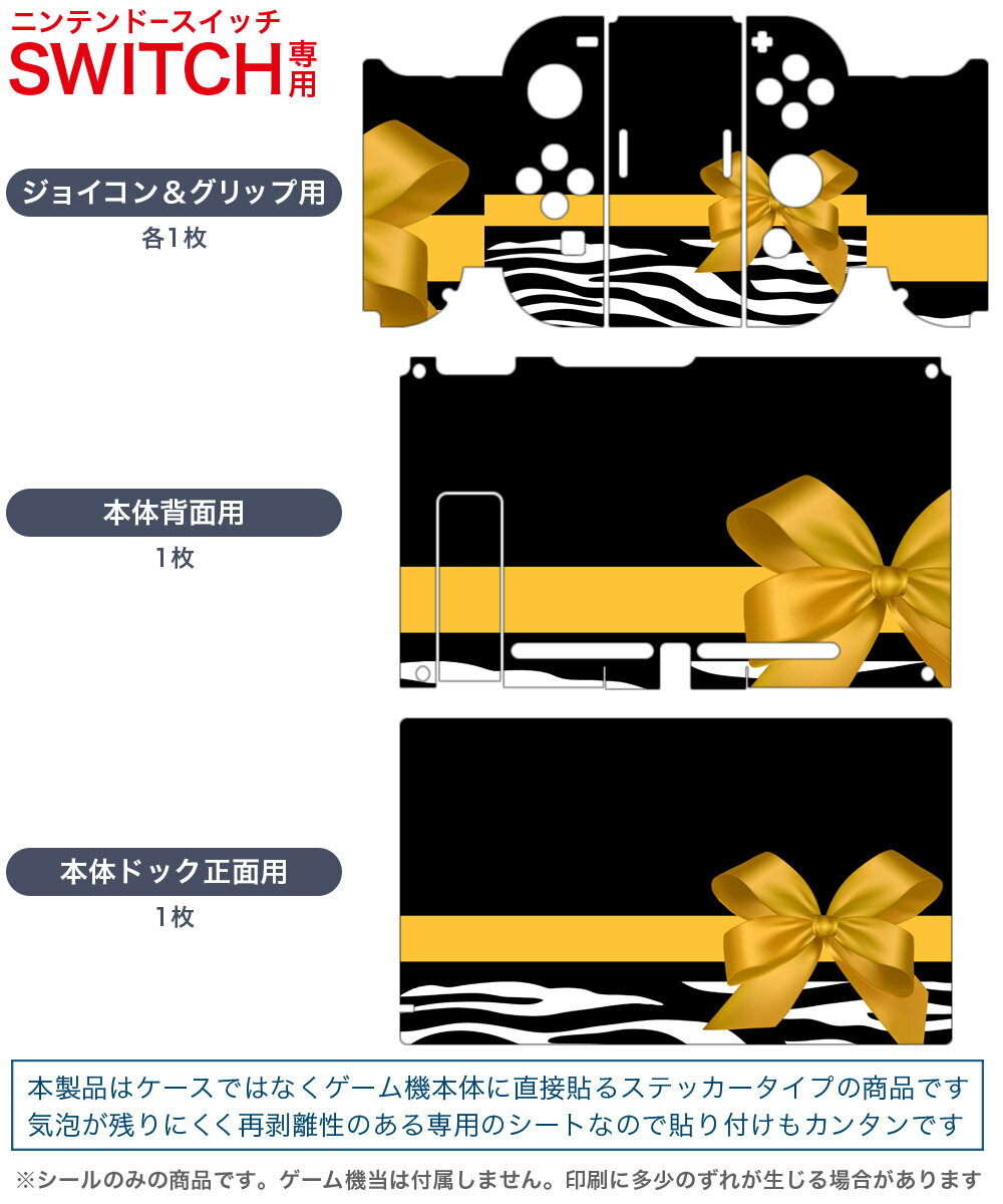 igsticker Nintendo Switch 用 デザインスキンシール 任天堂 ニンテンドー スイッチ 専用 本体ドック Joy-Con Joycon ジョイコン 専用 ゲーム機 カバー アクセサリー フィルム ステッカー 004730 ゼブラ リボン 黄色