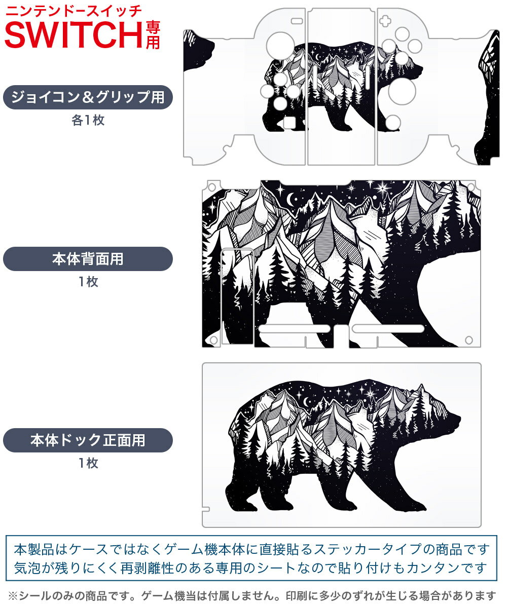 igsticker Nintendo Switch 用 デザインスキンシール 任天堂 ニンテンドー スイッチ 専用 本体ドック Joy-Con Joycon ジョイコン 専用 ゲーム機 カバー アクセサリー フィルム ステッカー 014950 熊 模様 森