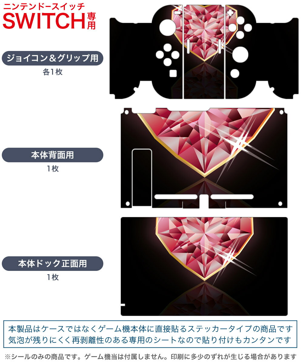 igsticker Nintendo Switch 用 デザインスキンシール 任天堂 ニンテンドー スイッチ 専用 本体ドック Joy-Con Joycon ジョイコン 専用 ゲーム機 カバー アクセサリー フィルム ステッカー 005360 ハート 宝石 黒