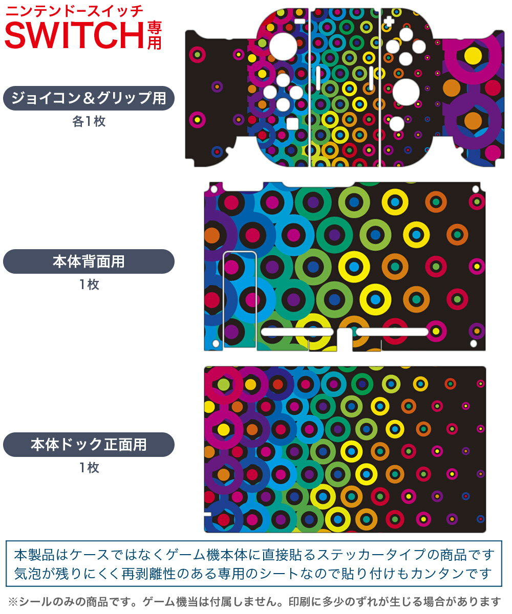 igsticker Nintendo Switch 用 デザインスキンシール 任天堂 ニンテンドー スイッチ 専用 本体ドック Joy-Con Joycon ジョイコン 専用 ゲーム機 カバー アクセサリー フィルム ステッカー 000507 カラフル ドット レインボー