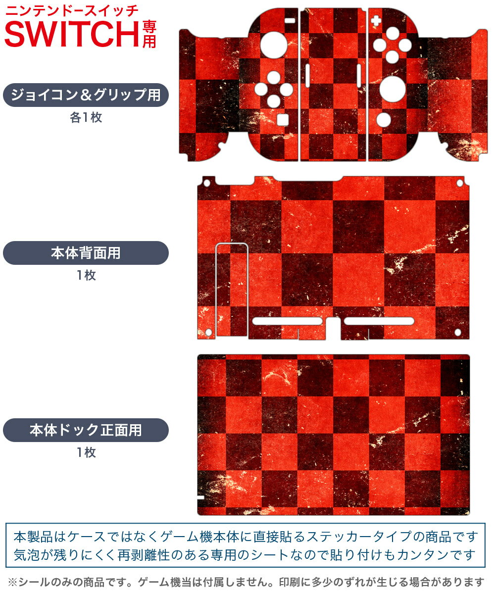 igsticker Nintendo Switch 用 デザインスキンシール 任天堂 ニンテンドー スイッチ 専用 本体ドック Joy-Con Joycon ジョイコン 専用 ゲーム機 カバー アクセサリー フィルム ステッカー 007997 チェック 市松模様 赤 ブラック 黒