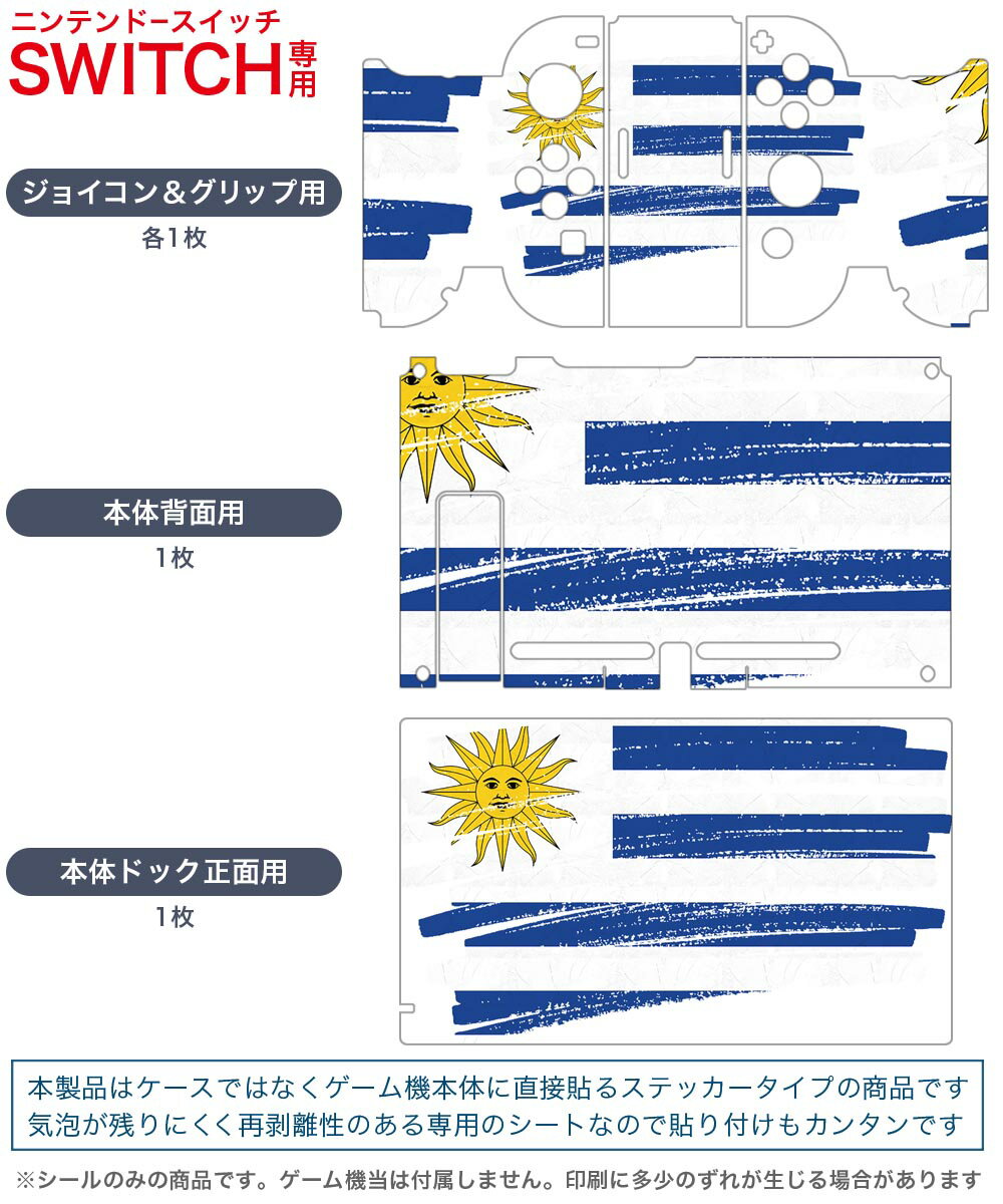 igsticker Nintendo Switch 用 デザインスキンシール 任天堂 ニンテンドー スイッチ 専用 本体ドック Joy-Con Joycon ジョイコン 専用 ゲーム機 カバー アクセサリー フィルム ステッカー 018594 国旗 uruguay ウルグアイ