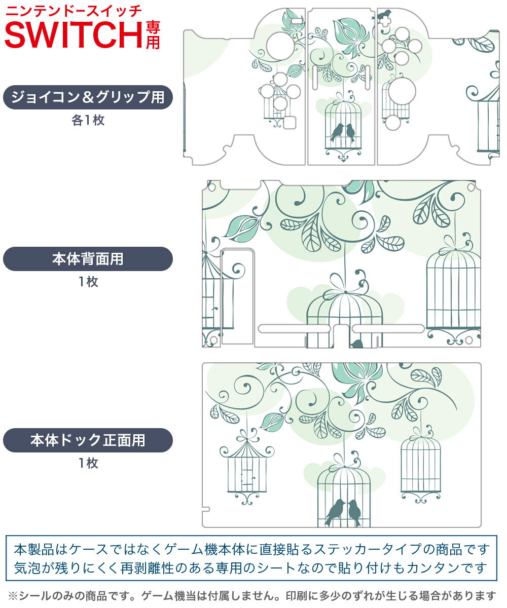 igsticker Nintendo Switch 用 デザインスキンシール 任天堂 ニンテンドー スイッチ 専用 本体ドック Joy-Con Joycon ジョイコン 専用 ゲーム機 カバー アクセサリー フィルム ステッカー 009298 鳥 植物 緑
